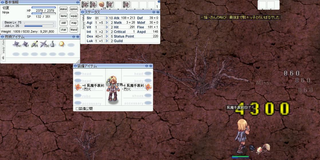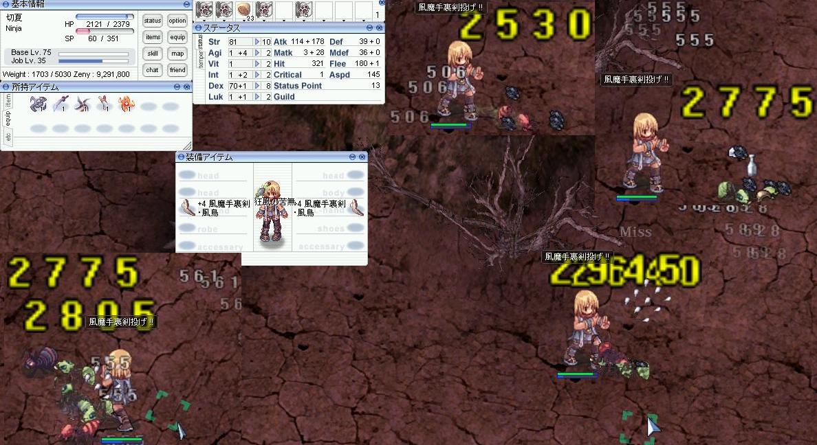 必中攻撃 武器とステータスと投げるクナイの影響を受ける